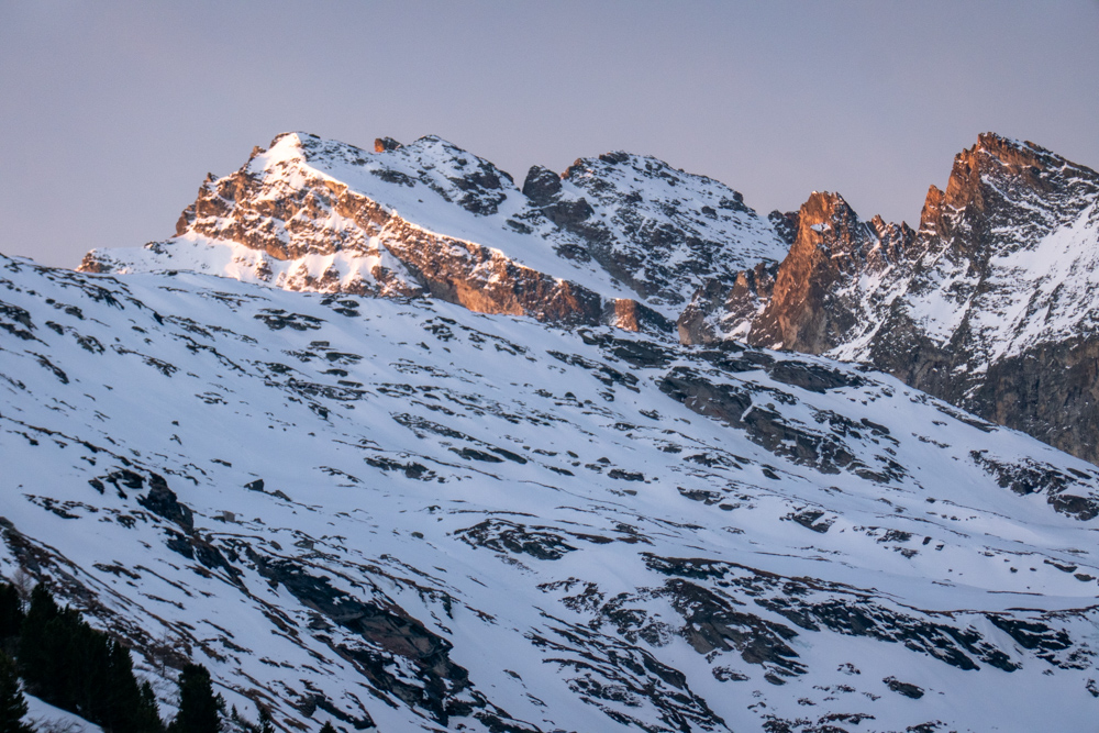Ski-2025» beau levée de soleil sur la crête d'Estache
