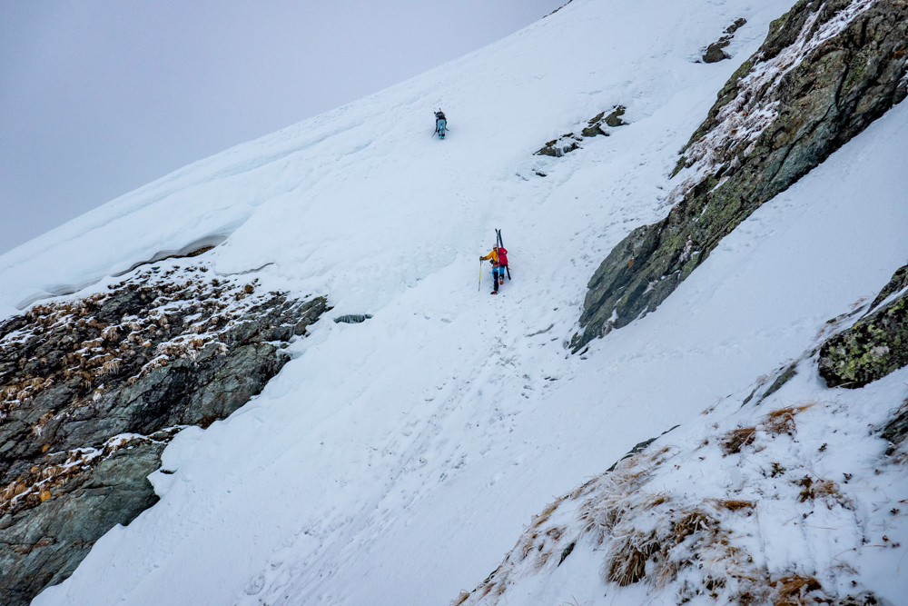 Ski-2025» au dessus d'une cascade, pas facile de trouver le chemin dans le brouillard